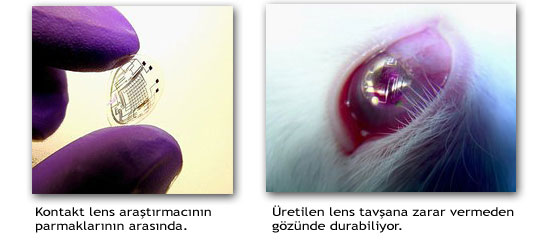 Tübitak’tan alınan bilgiye göre, Washington Üniversitesi’ndeki mühendisler, esnek ve kullanımı emniyetli bir kontak lens içine elektronik devre ve ışıklar koymayı başardılar.