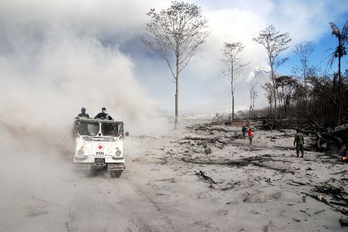 CAKARTA- Endonezya’nın Java adasında iki hafta önce harekete geçen Merapi yanardağının püskürdüğü duman ve küller çevresindeki hayatı olumsuz etkilemeye devam ediyor. Yanardağ çevresindeki tropikal bitki örtüsü kaybolurken, külle kaplı alanlar farklı bir gezegen görüntüsüne büründü. Merapi yanardağında çıkan lav külleri, tropikal bitki örtüsünden eser bırakmadı. Özellikle Merapi yanardağına yakın yerlerdeki görüntü insan kanını donduracak şekilde. Palmiye ağaçları ve birbirinden farklı binlerce tropikal çiçeğin olduğu bölge, şimdi adeta bir kum çölü veya Mars yüzeyini anımsatıyor. Felaket bölgesine yardım çalışmaları için ancak özel araçlar ile girilebiliyor. Bu arada yerel makamlar Merapi yanardağından ölen sayısının 191’e ulaştığını açıklandı. Yetkililer rakamın Merapi’nin faaliyete geçmesi ile ortaya çıkan solunum sorunu, kalp krizi e diğer hastalıklardan ölenleri de kapsadığını kaydediyor. En son 2006’da Merapi yanardağında meydana gelen sarsıntılar ve dağdan yuvarlanan taşlar sonucu 2 kişi ölmüştü. 1994’de ise Merapi volkanının püskürmesi sonucu 60 kişi yaşamını yitirirken, 1930’dan bu yanan yanardağ bin 300 can aldı.