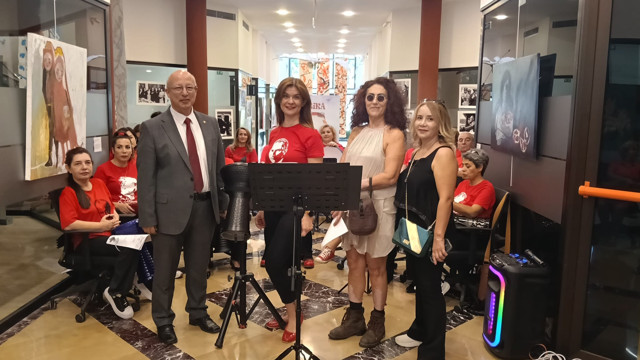 Açılış konuşmalarının ardında çoğunluğu kadınlardan oluşan Otantika Ritim Grubu Cumhuriyet türkülerini katılımcılara güçlü ritimler eşliğinde sundu.