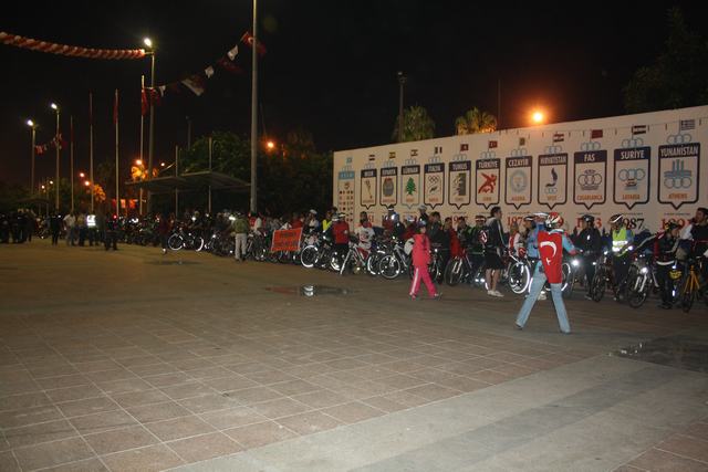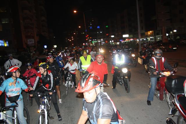Mersin Bisikletliler Derneği (Merbisder) inisiyatifi ile Mersin’de yapılan 29 Ekim Cumhuriyet Bayramı sürüşü yaklaşık 300’e yakın bisikletli ve motosikletli sürücünün katılımıyla akşam saat 19:30’da Atatürk Halk Evi’nin önünden başladı.