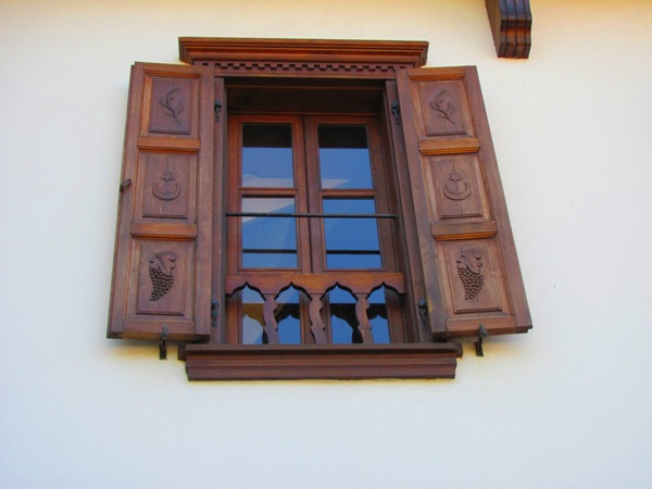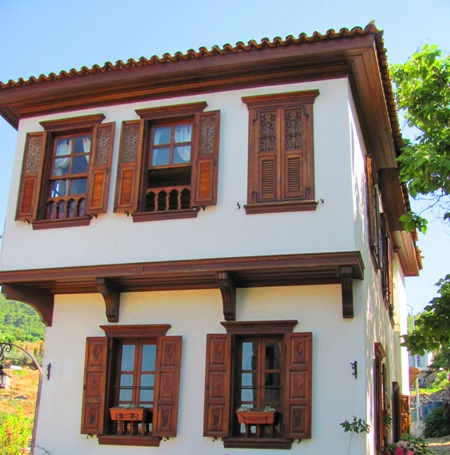 Zeminleri taş, üst katlar ahşap, dış cepheleri genellikle beyaz kireç badanalı. Kiremit kaplı çatıları dikkat çekiyor. Pencereler genellikle üst katlarda yer alıyor.