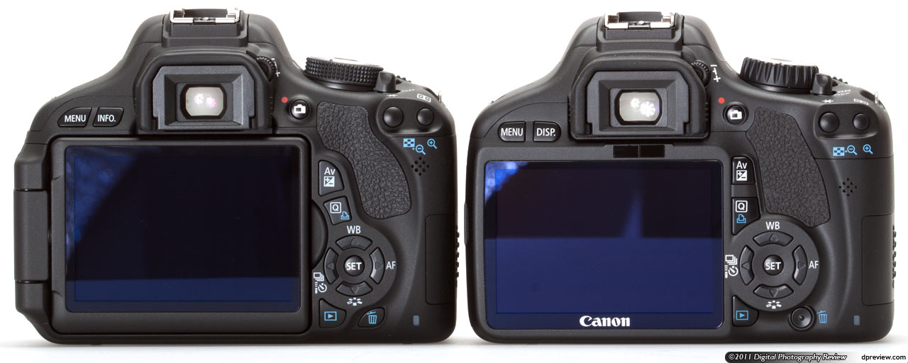 Solda Canon 600 D sağda ise 550 D'yi görüyorsunuz. Hissedebileceğiniz gibi 600 D nin gövdesi birazcık daha etli ve dönebilir ekrana sahip