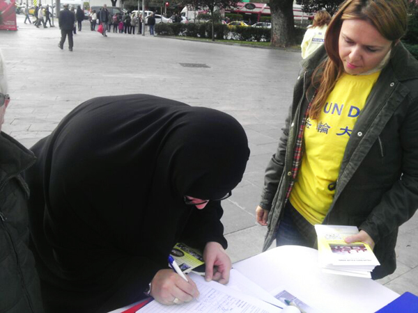 1 milyon imza toplanması hedeflenen kampanyaya Türkiye Falun Dafa uygulayıcıları da destek vermeye devam ediyor. 26 Ekim Cumartesi Taksim Tünel Meydanı’nda düzenledikleri imza kampanyası, 1 Kasım Cuma günü Beşiktaş Meydanı’nda devam etti. Konunun halka anlatıldığı ve Falun Dafa meditasyon egzersizlerinin de gösterildiği kampanya halktan büyük oranda ilgi gördü.