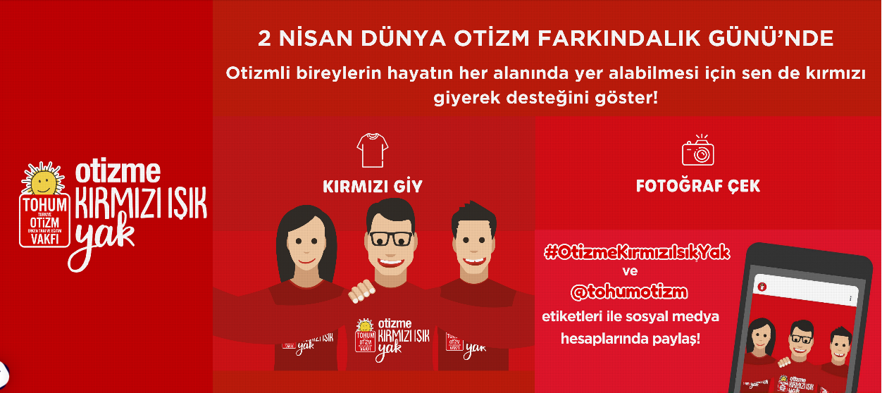 Otizm Tohum Vakfı 2 Nisan Otizm Farkındalık Günü kapsamında herkesi otizmlilerin yaşadığı problemler konusunda farkındalık yaratmak için kırmızı giymeye çağırdı. Vakıf, Instagram hesabından konuyla ile “Neden Otizme Kırmızı Işık Yakıyoruz?” başlığı ile yaptığı açıklamada otizmli çocukların hâlâ nitelikli sağlık ve eğitim hizmetlerine erişmek konusunda ve sosyal hayata katılmakta güçlük çektiğini ifade etti. Vakıf, otizmlilerin istihdamda yeterince yer bulamadığını ve sosyal ortamlarda sıkça ayrımcılığa uğrayarak yaşamın bir parçası olabilmek için mücadele verdiğini ifade ederek herkesi 2 Nisan’da Otizme Kırmızı Işık Yakmaya davet etti.