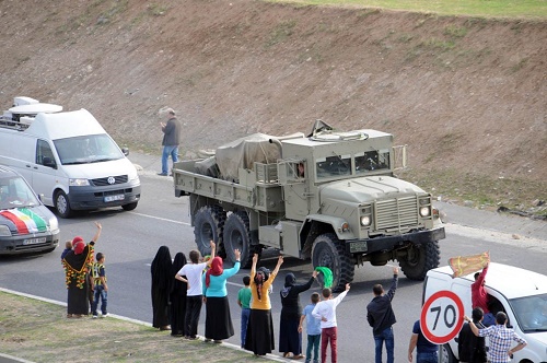 Mürşitpınar Sınır Kapısı bölgesinde peşmergelerin konvoyunda bulanan TIR’lar içerisindeki ağır silahlar monte edilerek, Kobani’ye sevk edildi.