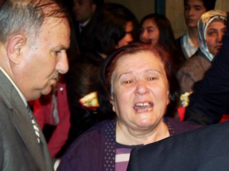 Sinir krizi geçiren şehit annesini valilik korumaları salondan çıkarırken, Belediye Başkanı Kadir Kara da acılı anneyi teskin etmeye çalıştı