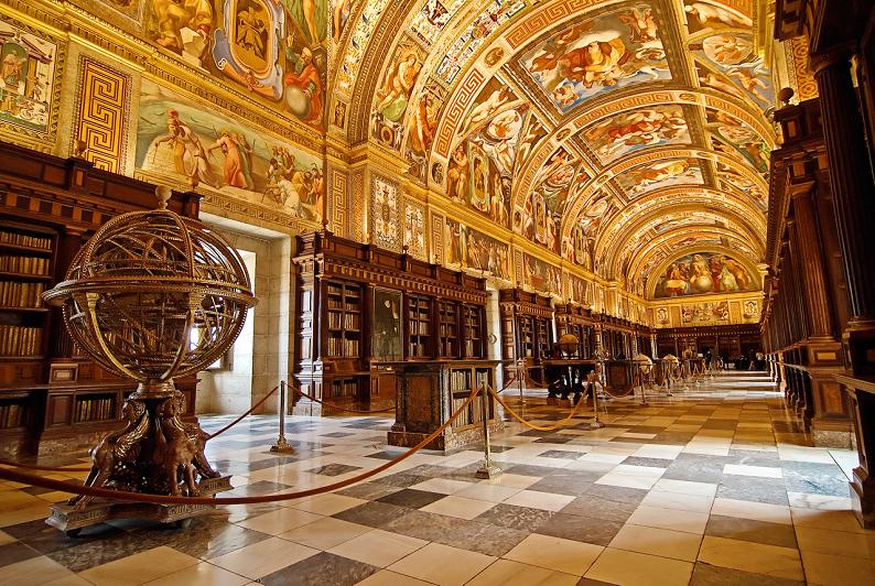 Saray ve manastırın yanında, Escorial Sarayı aynı zamanda İspanya krallarının kabri. Bu “pantheon”, kilisenin yüksek minberinin altında yer alıyor. II. Philip’in ölümünden çok sonraki zamanlara kadar yapımı tamamlanmamış. Her nasılsa Philip, Escorial Sarayı’nın batı girişinde bulunan uzun galerideki kütüphanenin tamamlanışına tanık olmuş. Değerli bir kitap ve el yazması koleksiyonunun bulunduğu bir oda, felsefe, ilahiyat, müzik ve geometri gibi konulan işleyen tablolarla süslü.