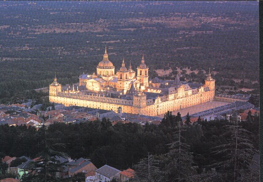 Escorial Sarayı, 1563 ile 1584 yıllan arasında yapılmış. Kralın kendisi de projenin gelişimiyle yakından ilgilenmiş. Kraliyet daireleri öyle bir tasarlanmış ki, kral kendi odasından kiliseye girebiliyor. Hasta ve yaşlı bir adam olarak da, yatağından yüksek minberi görebiliyordu. Philip’in, kilisenin doğu tarafına eklenen ve binanın çıkıntısı gibi duran sarayına St. Lawrence’ın ızgarasının kolu deniyor. Philip’in, daha geniş ve zengin görünümlü dairelerde yaşamak isteyen ve minferi görmeye pek meraklı olmayan halefleri, kilisenin kuzeyine ek kraliyet daireleri yaptırmış. Kilisenin güneyinde, iki katlı bir manastır yer alıyor. Orta avlu, buradaki heykellerden dolayı Evanların Avlusu adını taşıyor.