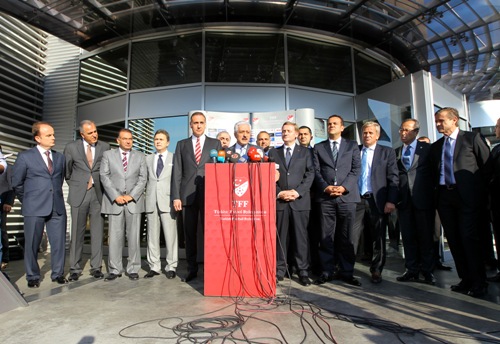 Türkiye Futbol Federasyonu Yönetim Kurulu, gündemdeki şike iddiaları ve gelişmeler ile ilgili toplantı düzenledi. İstanbul’da yapılan toplantının ardından TFF Başkanı Mehmet Ali Aydınlar, Yönetim Kurulu üyeleri ile birlikte basın açıklaması yaptı.