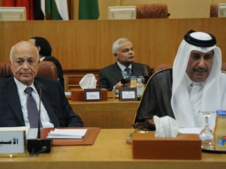 Arap Birliği Genel Sekreteri Nebil El-Arabi (solda) ve Katar başbakanı Hamad Bin Casım (sağda) (Mohammed Hossam/AFP/Getty Images)