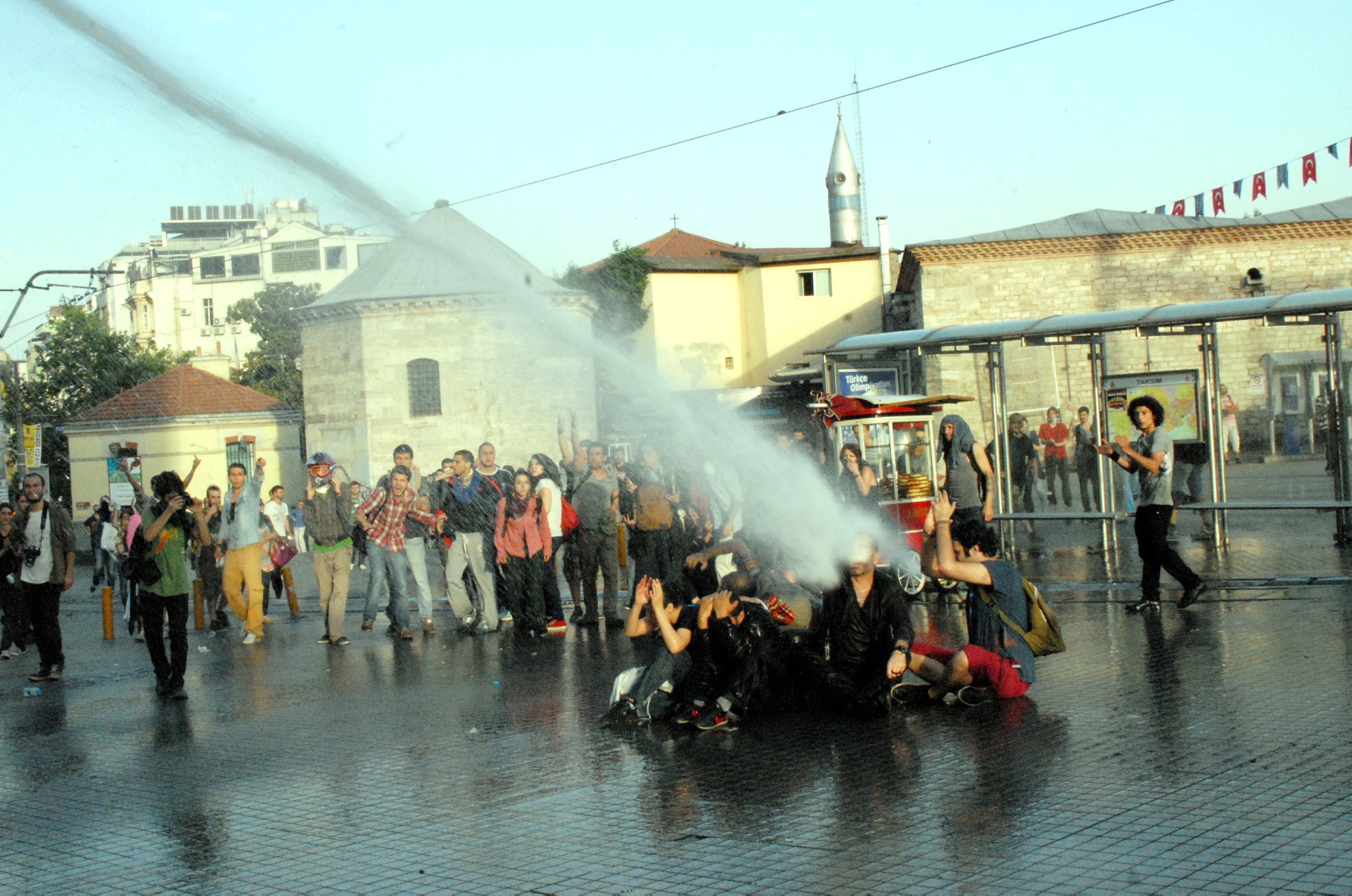 İSTANBUL – Taksim Gezi Parkı’nın yıkımı nedeniyle başlayan olaylar akşam saatlerinde arttı. Taksim’deki olaylar nedeniyle bölgeye destek polis ekipleri gönderilirken, olaylarda akşam saatlerinde arttı. Polis plastik mermi kullanırken, bir çok gösterici ve polis yaralandı.