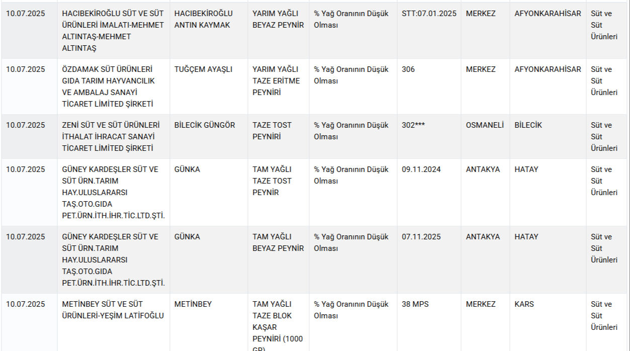 Peynir ve süt ürünlerinde: Nişasta, natamisin gibi katkı maddeleri saptandı.