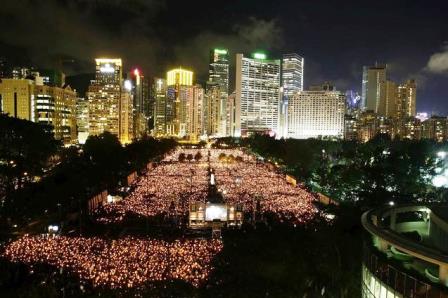4 Haziran günü Pekin’deki Tiananmen Meydanı’nda 25 yıl önce yaşanan katliamı anmak için, Hong Kong’da büyük bir gösteri gerçekleşti. Yaklaşık 200.000 kişi biraraya gelerek mum ışığı ile nöbet tuttu.