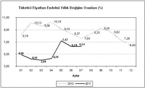TÜİK web sitesinden yapılan açıklamaya göre 2011 yılı Temmuz ayında 2003 Temel Yıllı Tüketici Fiyatları Endeksi’nde bir önceki aya göre    %-0,41 düşüş, bir önceki yılın Aralık ayına göre %3,00, bir önceki yılın aynı ayına göre %6,31 ve on iki aylık ortalamalara göre %6,37 artış gerçekleşti