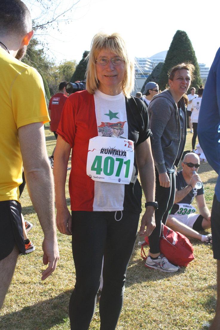 2007 yılından beri Suriye’de Arrawada şehrinde yaşayan Alman asıllı Suriye vatandaşı Elvira Portugall dünyaya Esad rejiminin haklı olduğunu duyurmak için Uluslararası Runtalya Maratonu’na Suriye bayrağı giyerek katıldı.1949 yılında Almanya’da Mainz şehrinde doğan Portguall, hayatı boyunca Almanya’da yaşadı ve EDS Company firmasından sistem mühendisi olarak emekli oldu. Bu yıllar sırasında oryantal hayata ve arkeolojiye duyduğu meraktan dolayı 1975 yılından itibaren Suriye’ye gidip gelmeye başladı. Ziyaretleri sırasında oradaki Suriye halkı ile iletişim kurmakta zorlandığı ve araştırmalarını derinleştirmek istediği için Arapça öğrenmeye başladı. Bunun için yaşadığı şehirde İsrail’den sürgün edilmiş bir Sünni Müslümanın yaptırdığı bir camiye gitmeye başladı. Bu süre içinde İslam’ı güzel ve doğru bir din olarak görmesiyle kendi dinini İslam olarak seçti. Arapça hocasının artık kapanması gerektiği sözleri üzerine ve Suriye’de gördüğü modern İslam yaşamının etkisiyle de 2007 yılındaki emekliliğinin ardından Suriye’ye yerleşti. Portugall o günleri şöyle anlatıyor: “ Suriye o kadar modern bir ülkeydi ki hem Hıristiyanlar, hem Aleviler hem de Müslümanlar özgürce ve birbirlerine karşı saygıyla yaşıyorlardı. Ama bugün “Ulusal Konsey” olarak BM’nin tanıdığı kökten dinci kesim, o zamanlarda da modern ve özgür yaşama karşı bir tehdit oluşturuyordu. Ve bugünkü olaylar da tarihte de daha önce olduğu gibi bu grubun kışkırtmaları ile ortaya çıktı.”