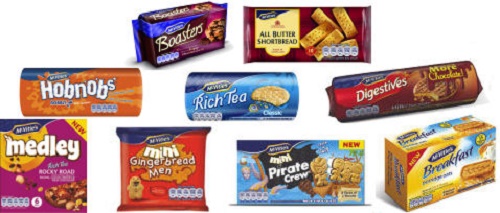 İngiltere Kraliçesi Elizabeth’in doğum günü ve torunu Prens William’ın da düğün pastasını yapan McVities gibi pek çok markayı elinde bulunduran United Biscuits’in şu anda 20 ana markası bulunuyor. En ünlü markaları arasında McVitie’s, Jacob’s, Delacre, Twiglets, BN, Go ahead, Sultana, Penguin, Carr’s, Verkade, DeliChoc, Mini Cheddars ve Jaffa Cakes bulunuyor.