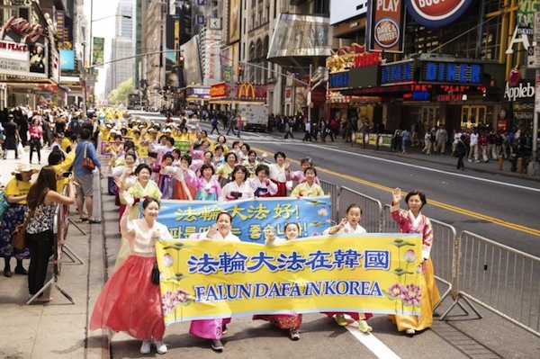 100’den fazla ülkeden gelen binlerce Falun Dafa uygulayıcısı, Dünya Falun Dafa Günü kutlamaları kapsamında düzenlenen Büyük Geçit Töreni için New York 42. caddede bir arada. (15 Mayıs, 2015)